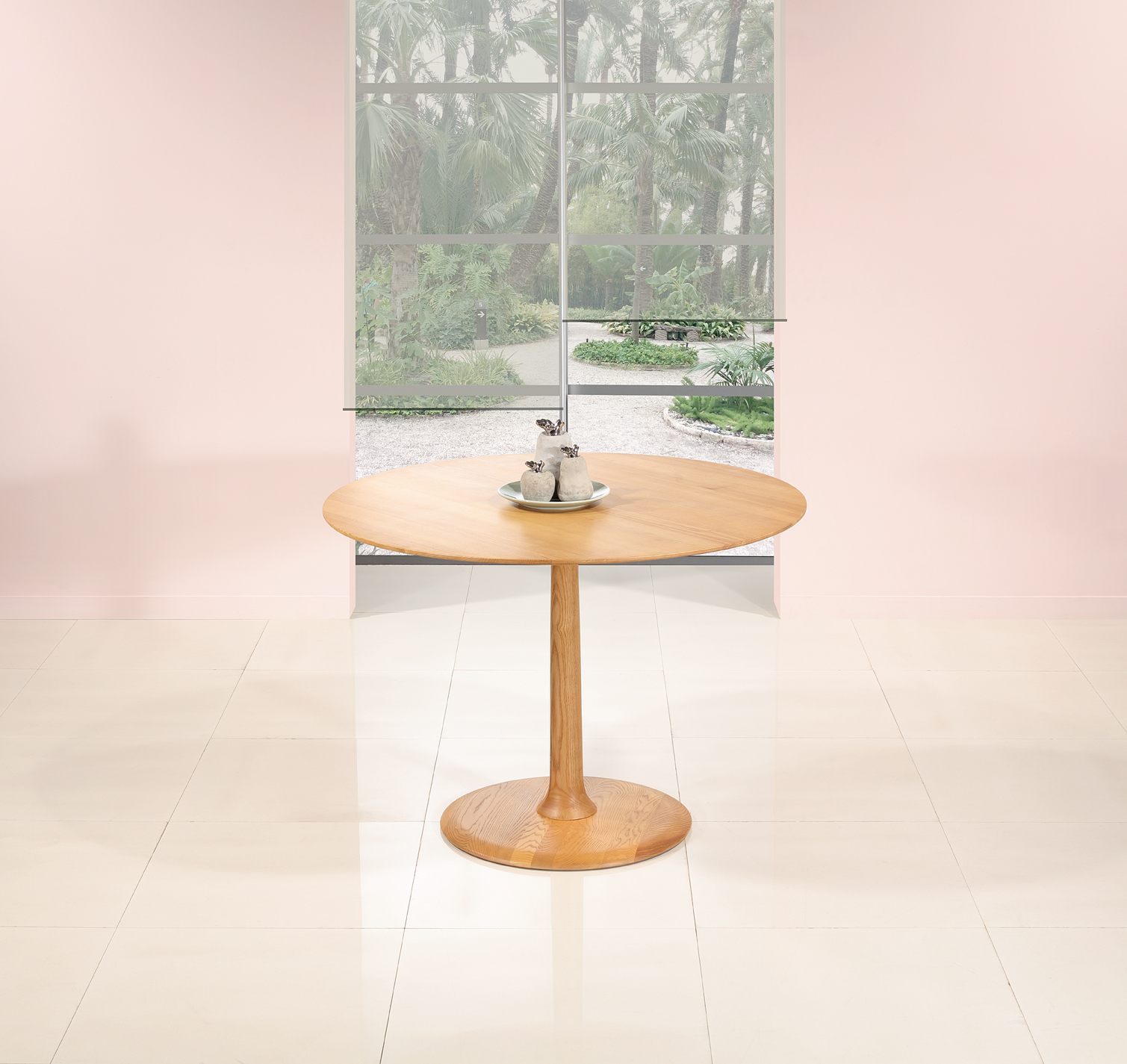 Table Ronde pieds central réalisée en Frêne massif de ligne Contemporaine